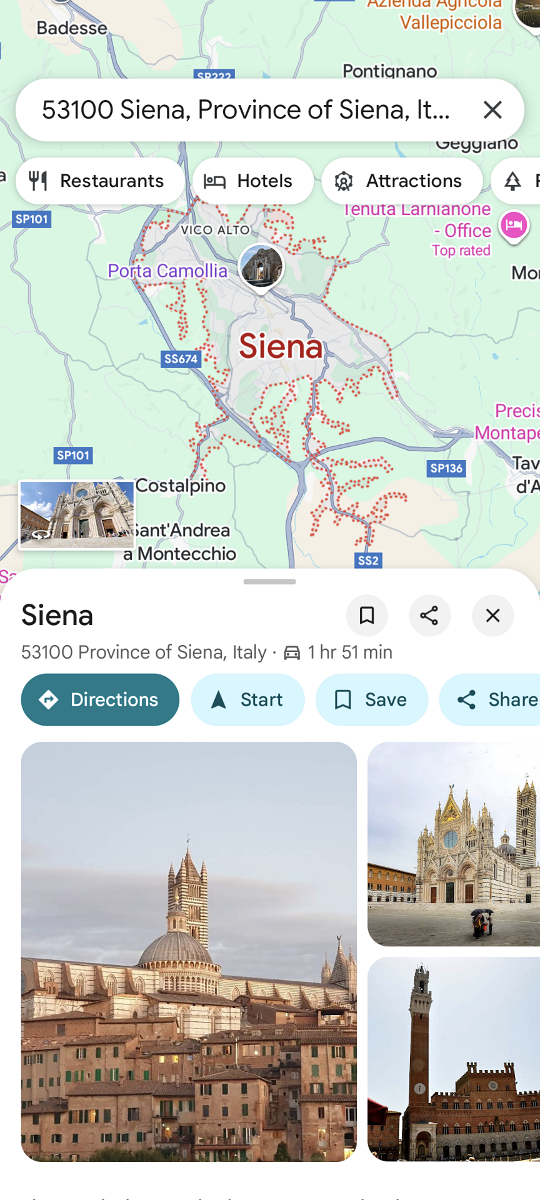 We drove up to Siena for a guided tour Cute tour guide Nice scenery Very interesting wine with dinner in Manciano at Osteria L'Orologio (38 euros) 10-1310-15